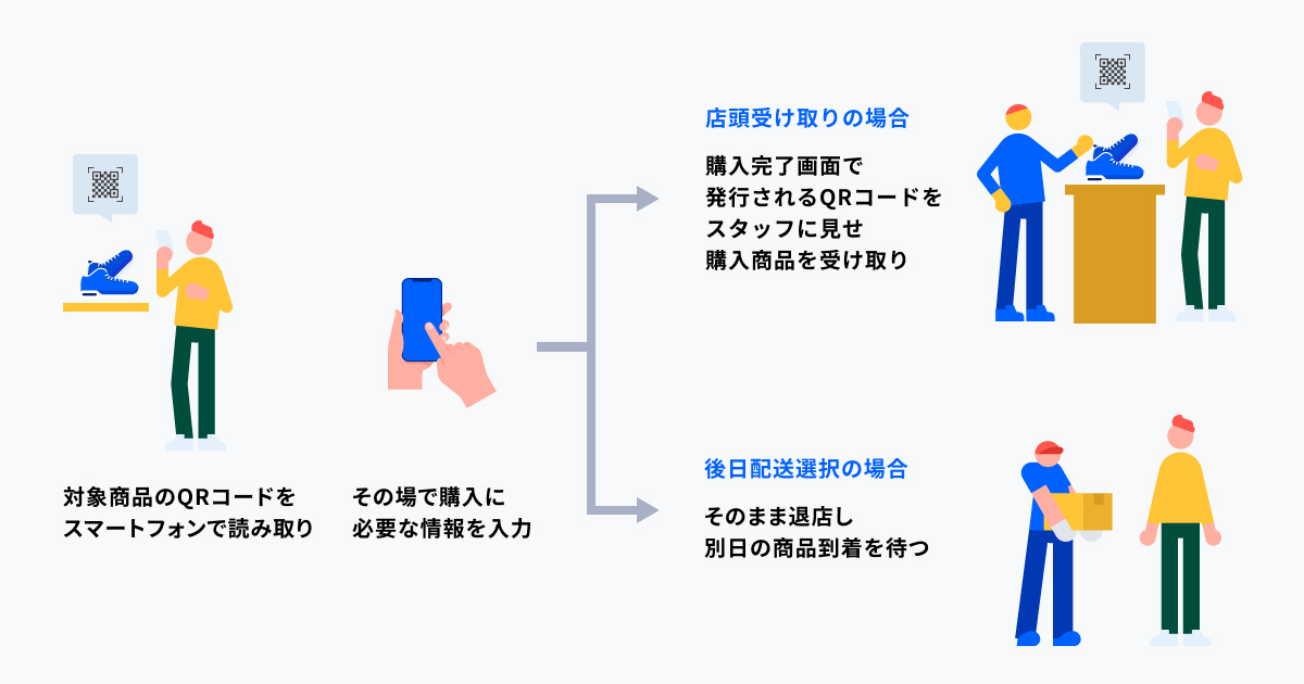 THE [ ] STOREは、SUPER STUDIOと三井不動産がEC/D2Cブランドへ提供するOMOソリューションのひとつです。来店者は自らのスマートフォンを使って二次元バーコードから商品を購入できます。出店するEC/D2Cブランドは、オンラインだけでなく、オフライン(リアル店舗)での購入データもecforceで一元管理できるようになるため分析がしやすく、顧客体験を向上するためのCRM施策などに活用できます。
