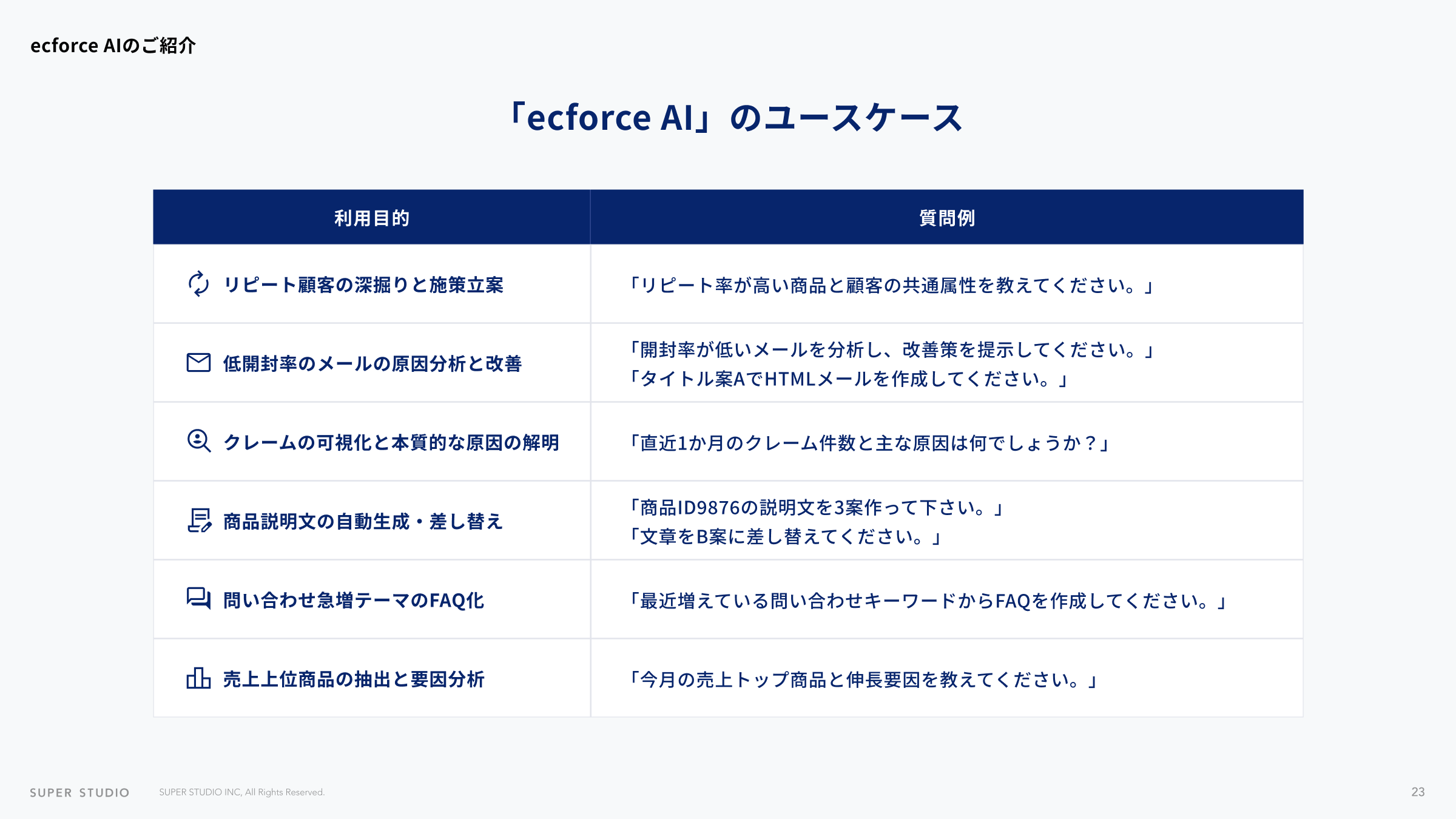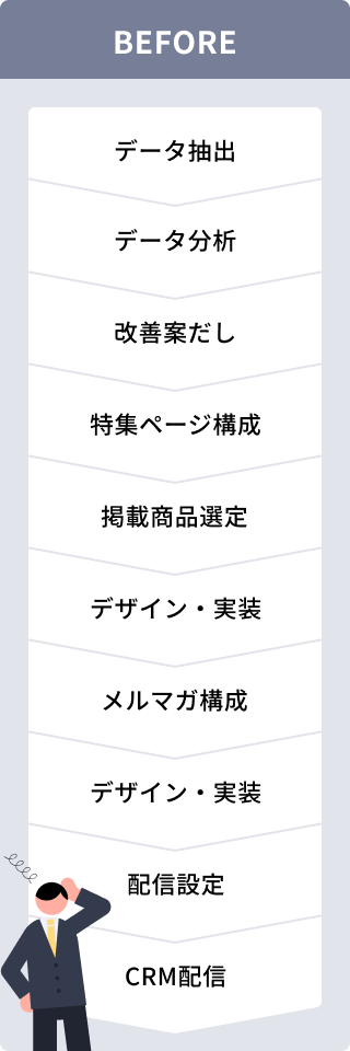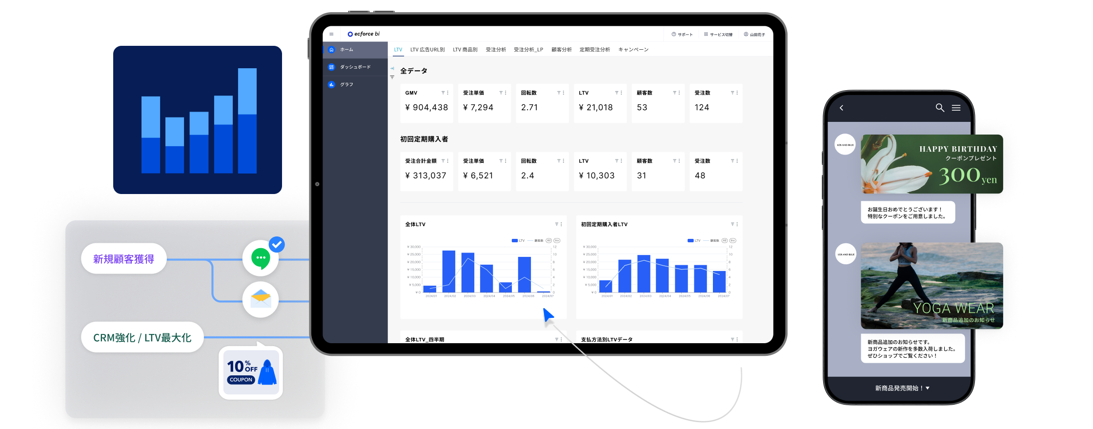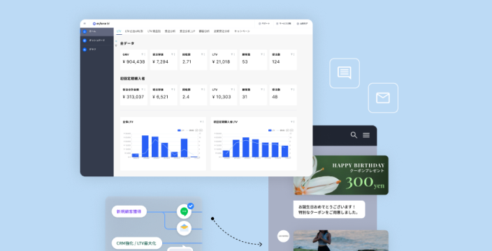売上や販売商品などショップの基本分析はもちろん、購入者データを活用し、売上を最大化。継続的な売上獲得を可能にすることで、利益UPを実現します。