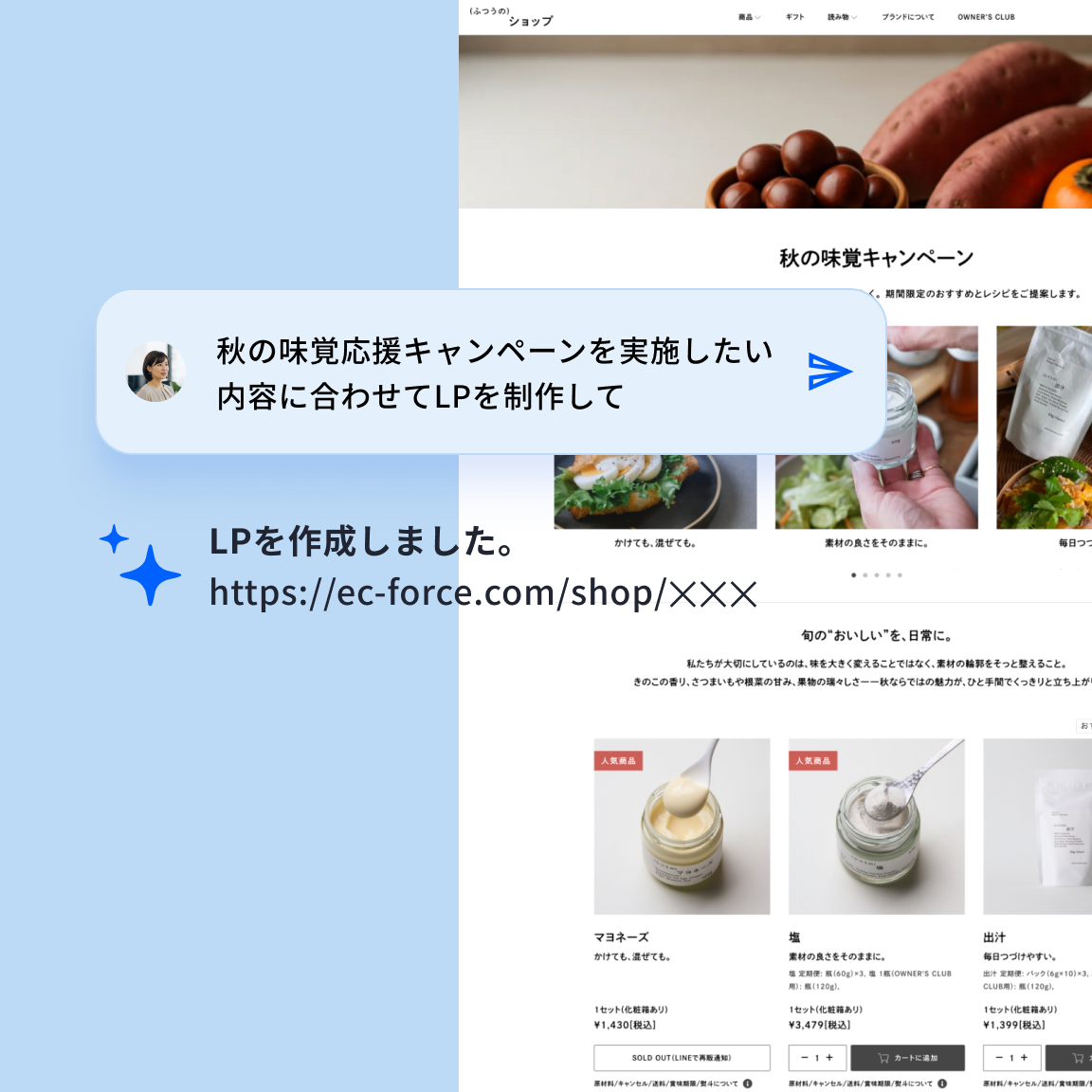 ビジネスモデルや販売商品の違いに合わせて、ECサイトとLP(ランディングページ)を思いのままに制作可能。