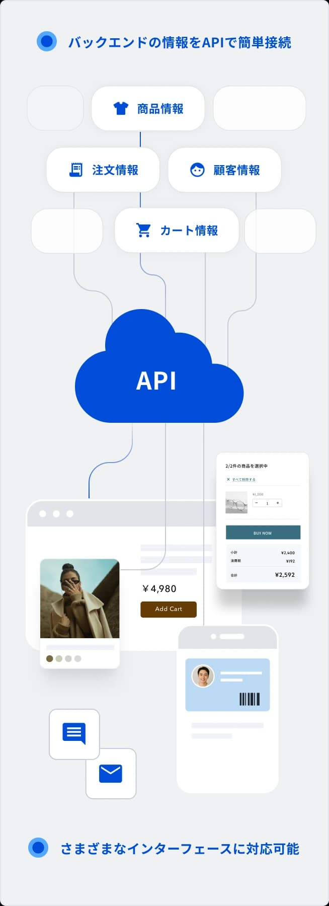 APIを利用してフロントエンドからバックエンドまで幅広くカスタマイズ可能。